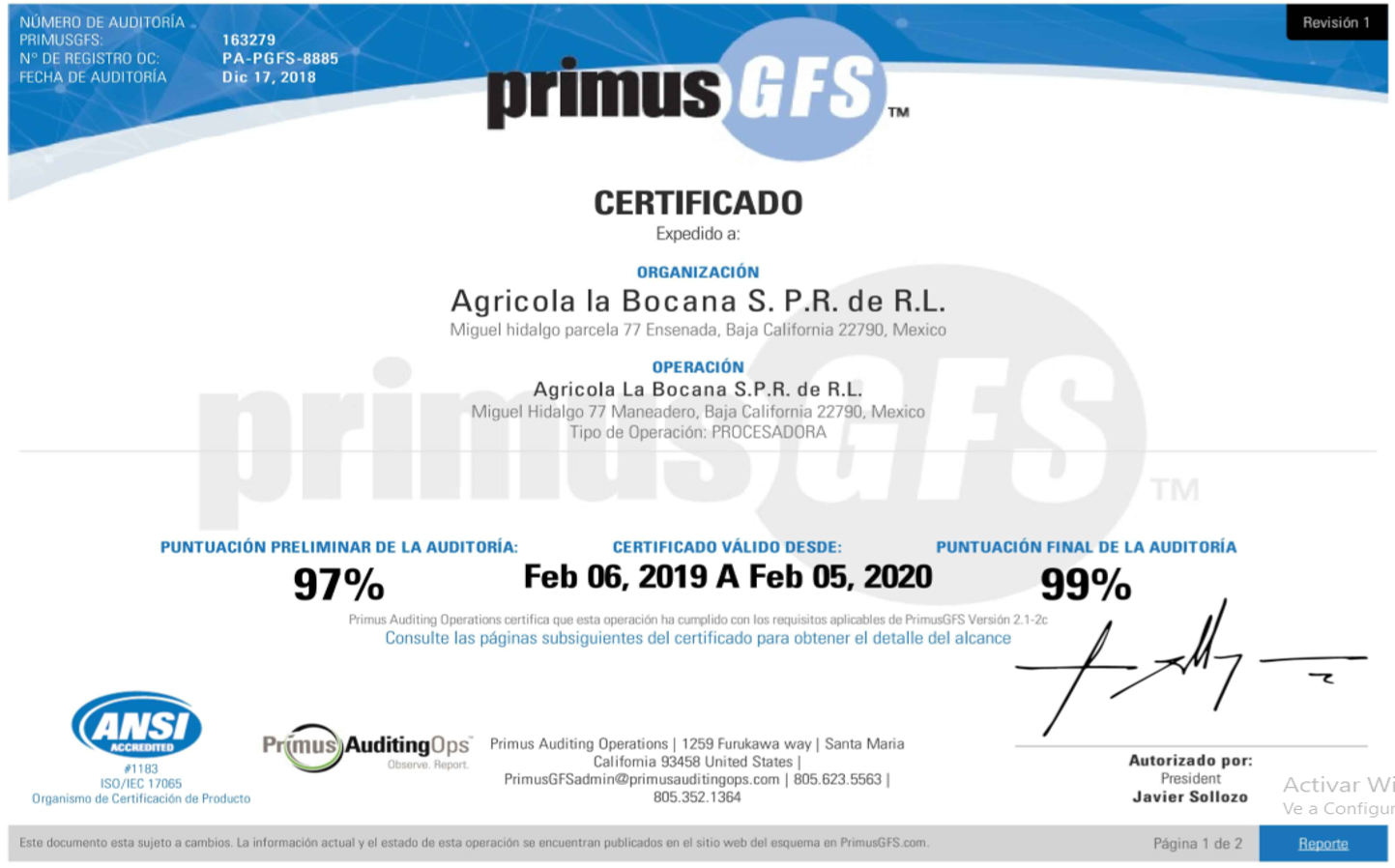 AGRÍCOLA LA BOCANA S.P.R DE R.L